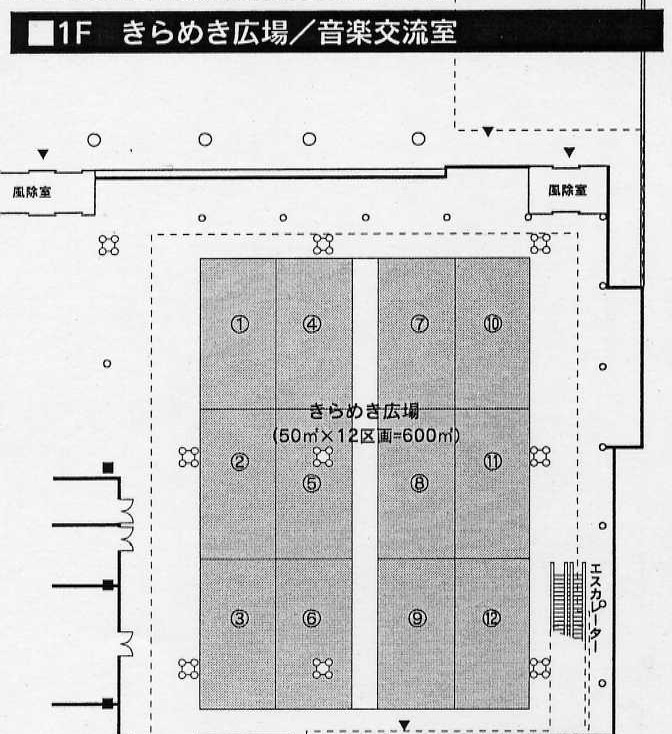 ※なお、きらめき広場は、吹き抜け構造となっており、学習塾や福祉施設などに面していることから、音楽イベントは、許可できない場合や利用に制限がかかる場合がありますのでご了承ください。